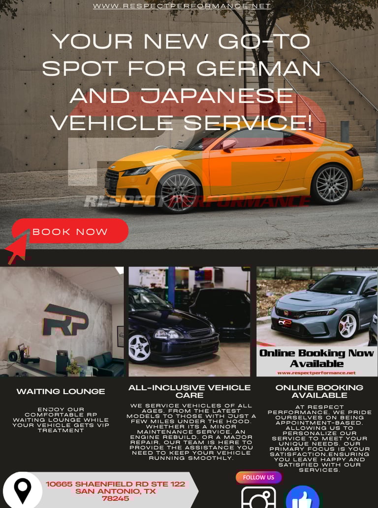 GOT AN ESTIMATE FROM A DEALERSHIP THATS BREAKING THE BANK? BRING IT TO RESPECT PERFORMANCE, AND WE'LL BEAT IT! OUR COMMITMENT TO FAIR PRICING AND TOP NOTCH QUALITY SERVICE MEANS YOU CAN TRUST US TO GET THE JOB DONE RIGHT, FOR LESS. DONT SETTLE FOR DEALERSHIP PRICES, PLUS, ALL WORK IS BACKED BY OUR LABOR AND PARTS WARRANTY FOR YOUR PEACE OF MIND.